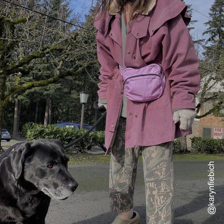Updated for Spring ’23 with a longer, 45" adjustable logo strap. Wears crossbody or around the waist. Exterior and interior zip pockets. Machine washable.